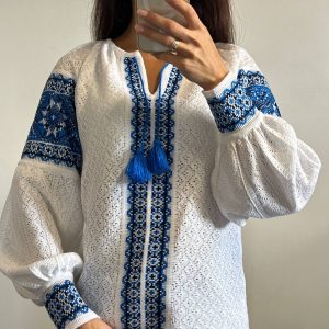 В’язана жіноча вишиванка Газдиня (біло-синя)