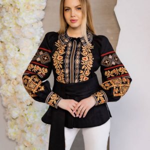 Жіноча вишита сорочка Мирослава (чорно-золота)