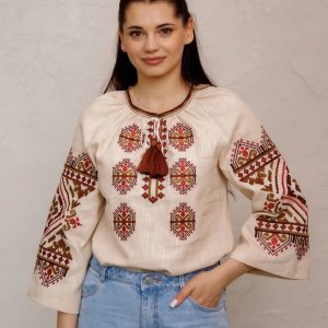Жіноча вишиванка Богуслава (беж з вишневим )