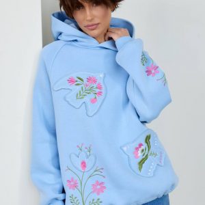 Жіноче вишите худі Пташка (блакитне)