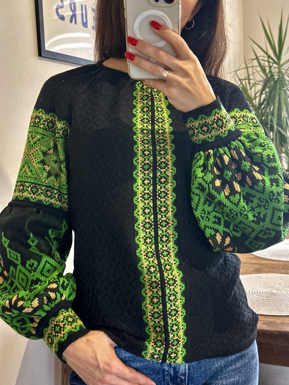 В’язана жіноча вишиванка Газдиня (чорна з зеленим)