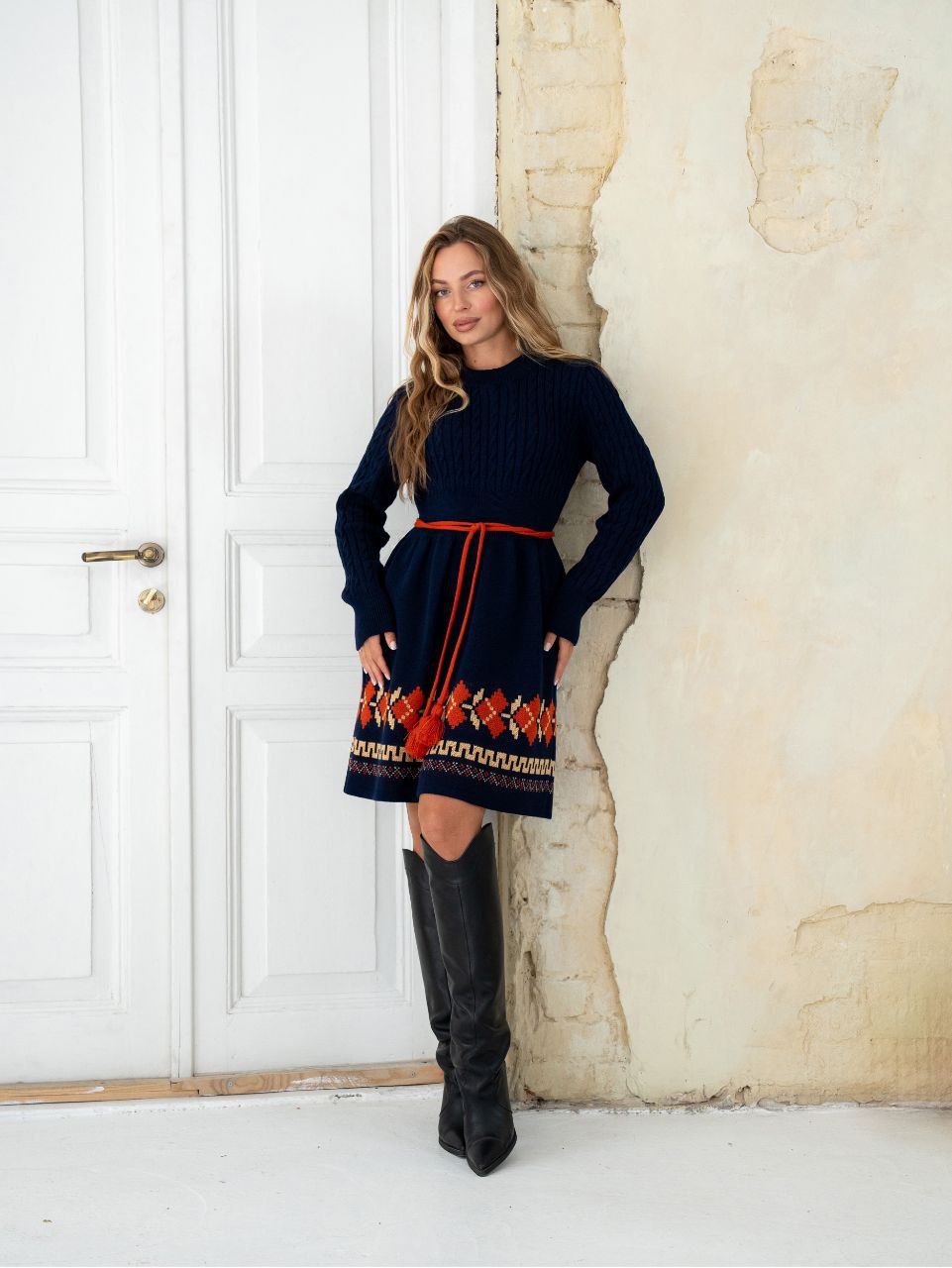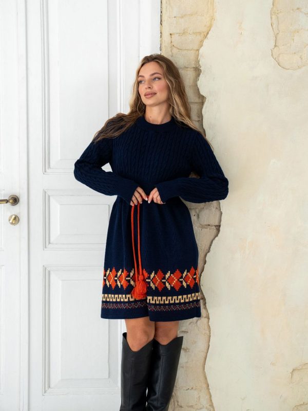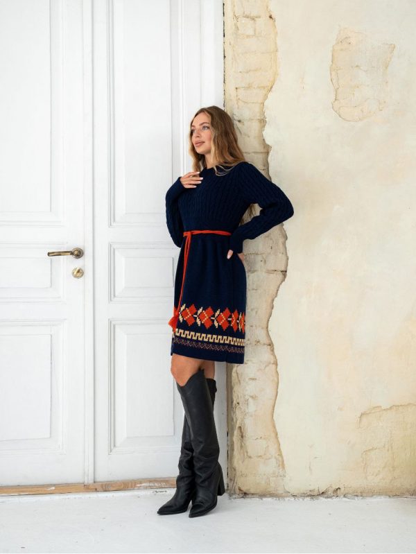 В’язана сукня Етно (темно-синя)