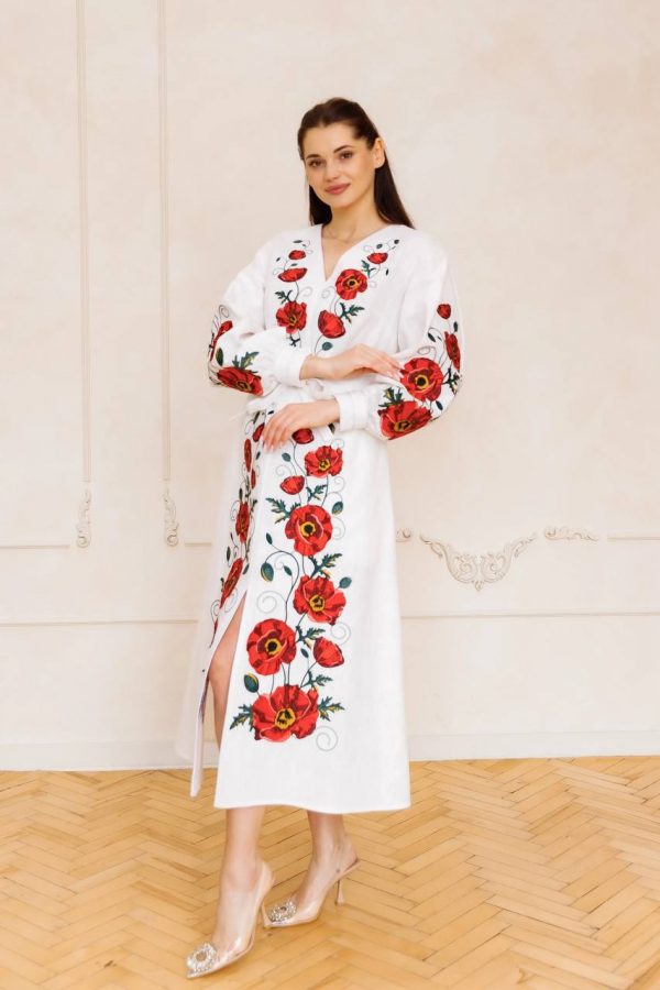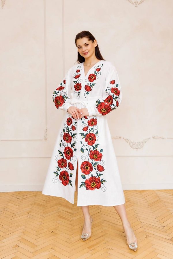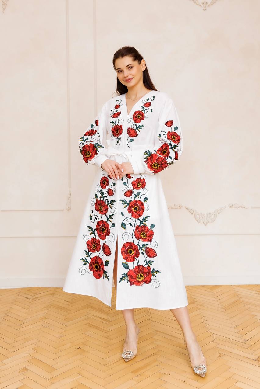 Жіноча вишита сукня Харизма (біла з червоним) кількість