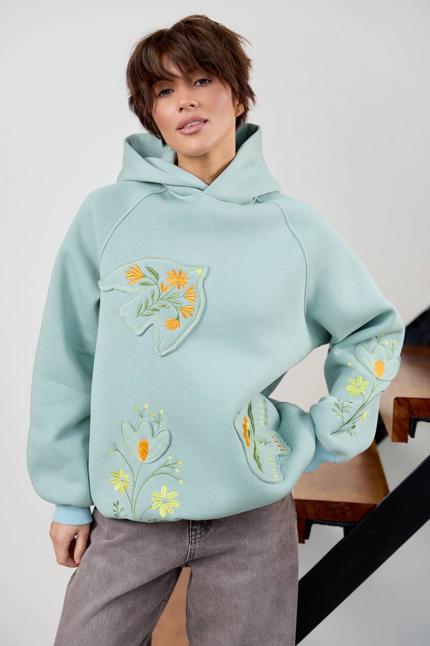 Жіноче вишите худі Пташка (м'ятне) кількість