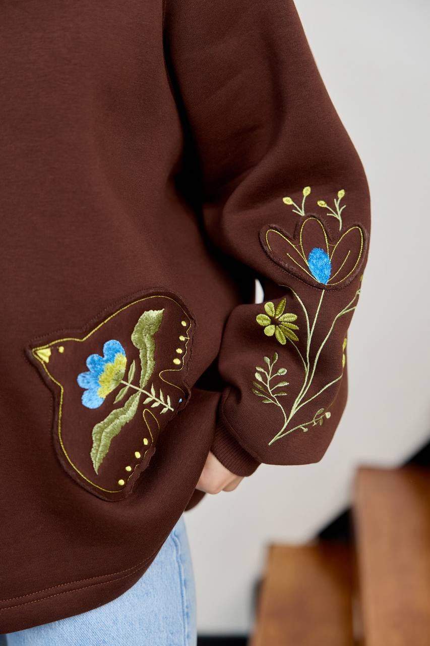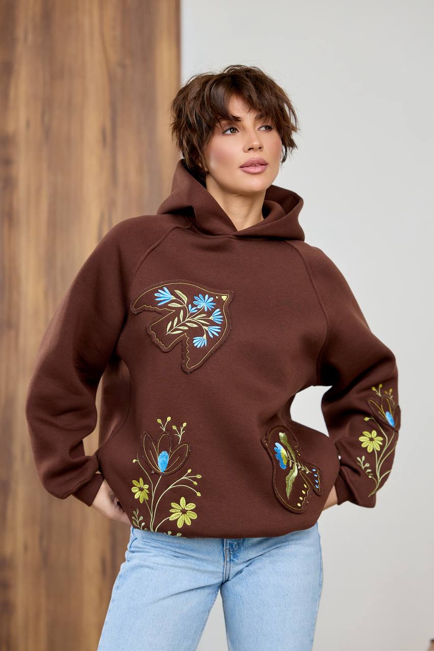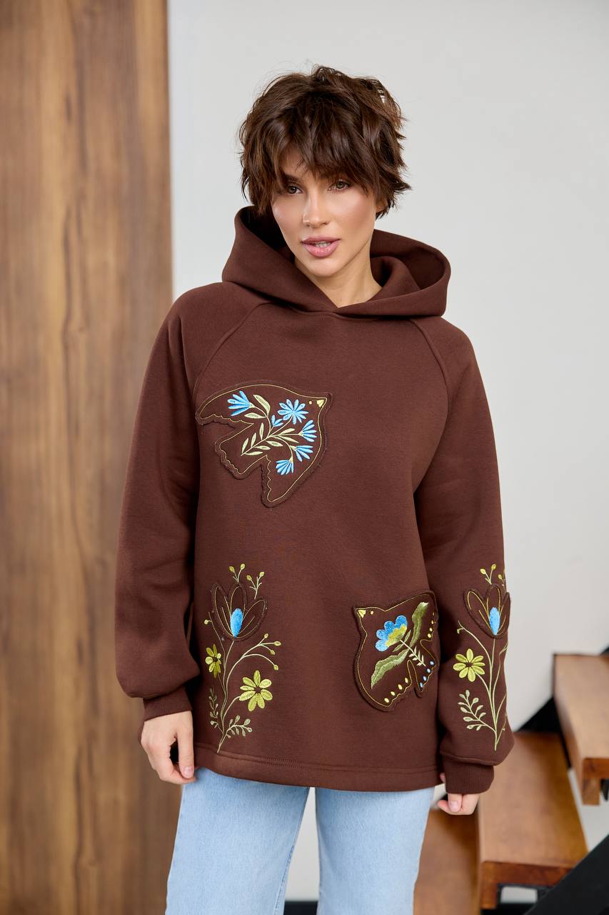 / Жіноче вишите худі Пташка (шоколадне)