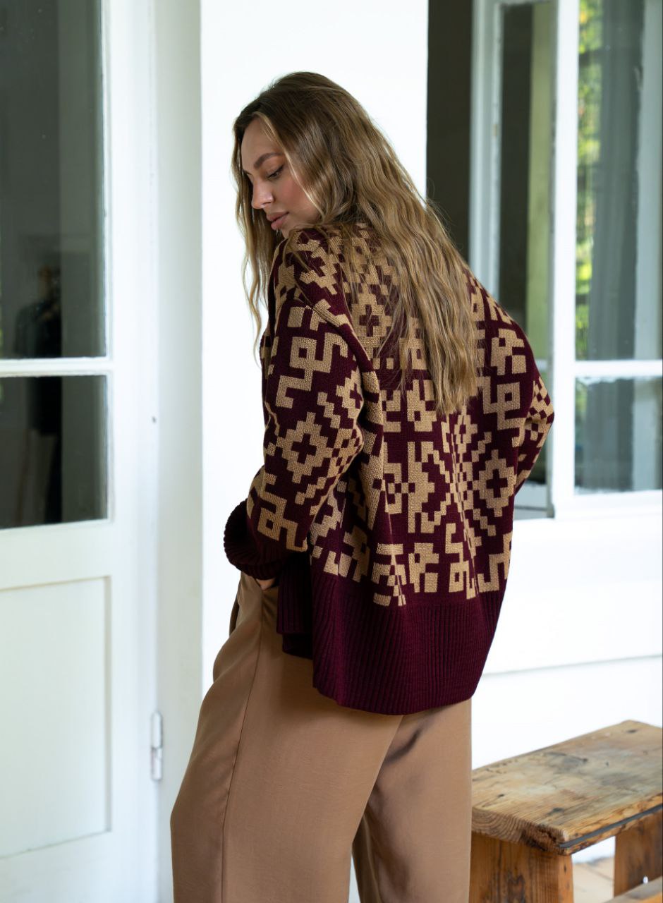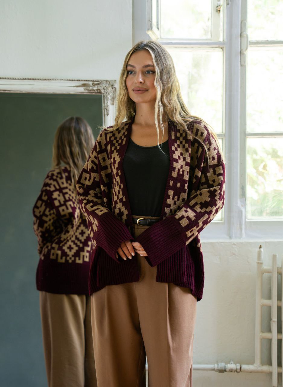 Кардиган “Вояж” (бордово-коричневий) має універсальний 44/50