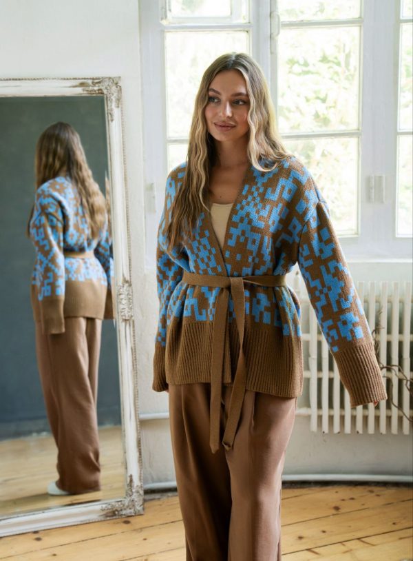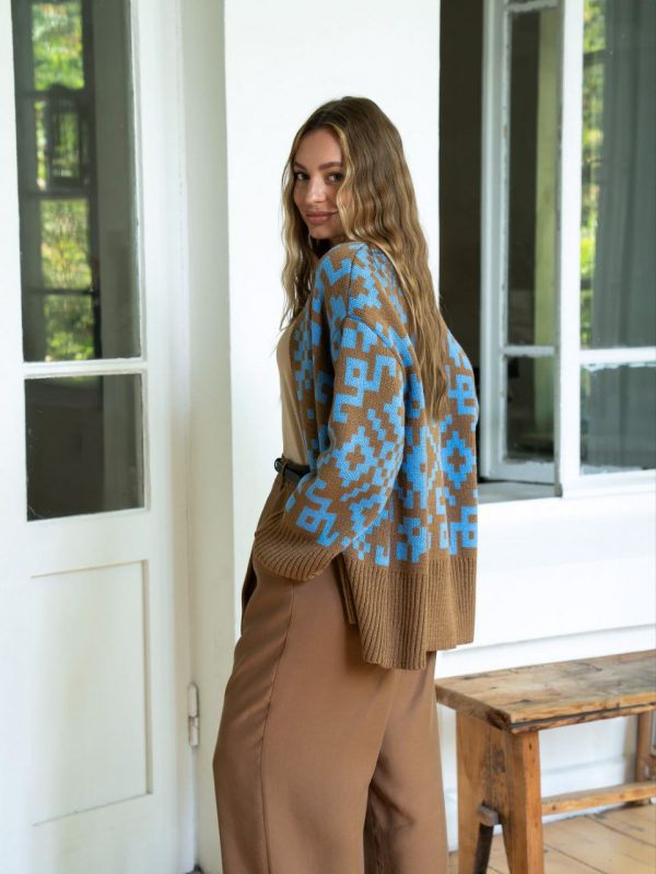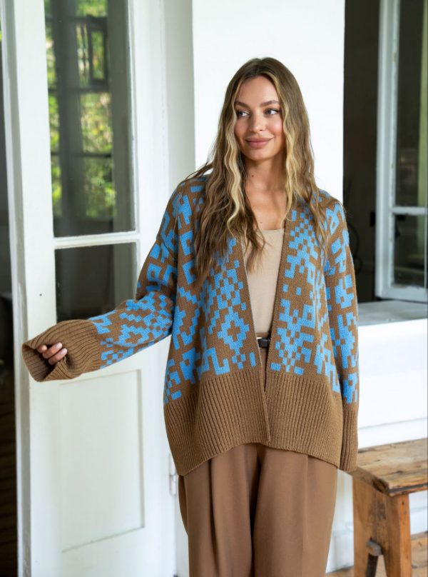 Кардиган “Вояж” (коричнево-блакитний) має універсальний розмір 44/50.