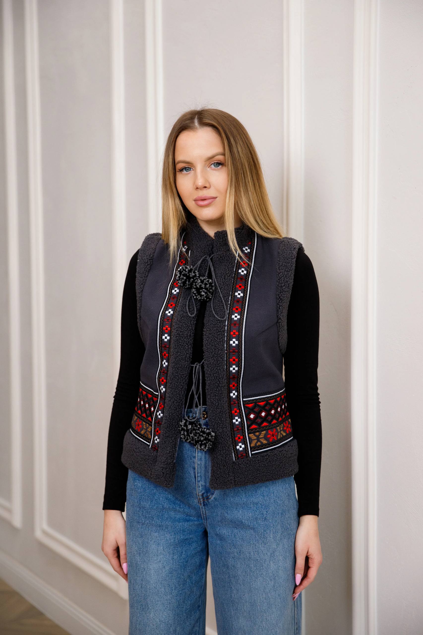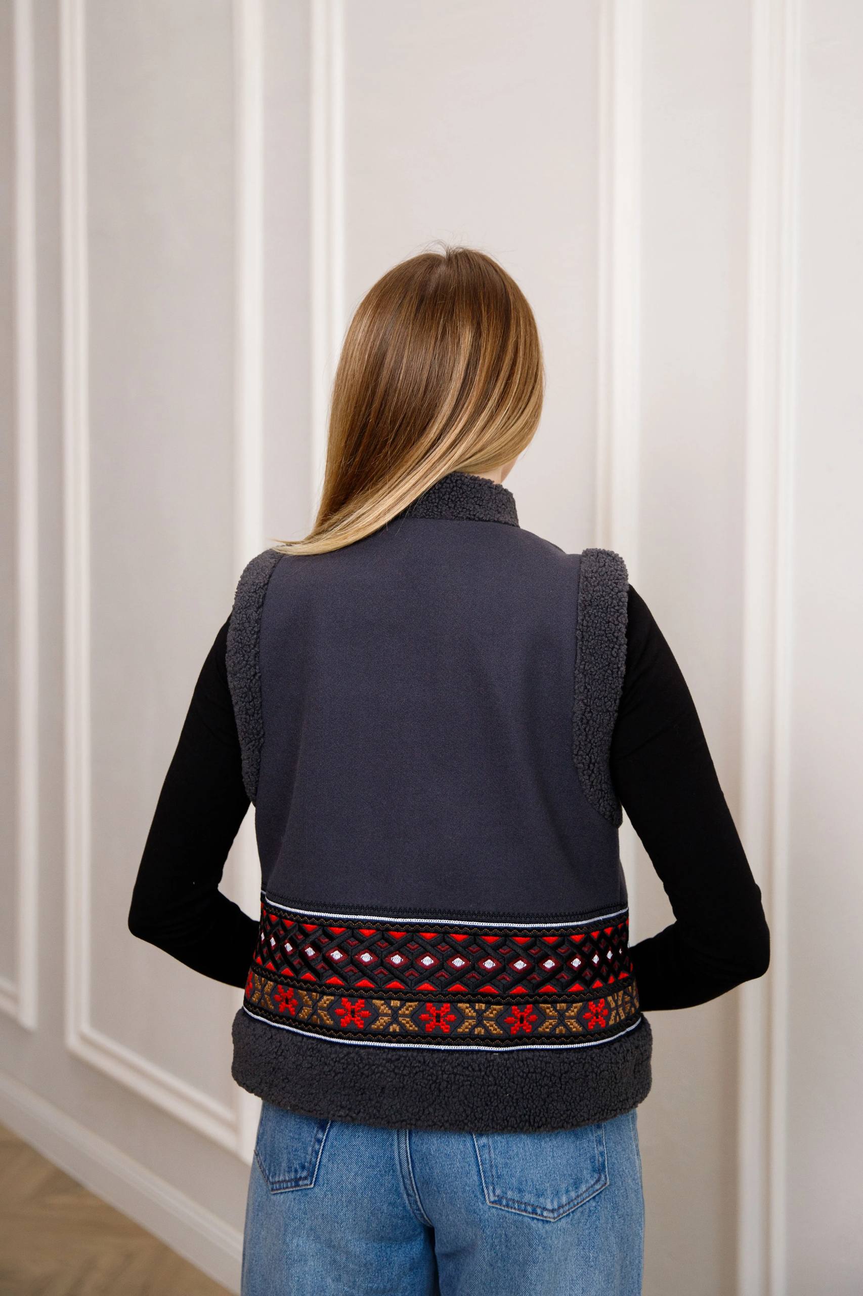 Карпатська кептарка з геометричним орнаментом (сіра)