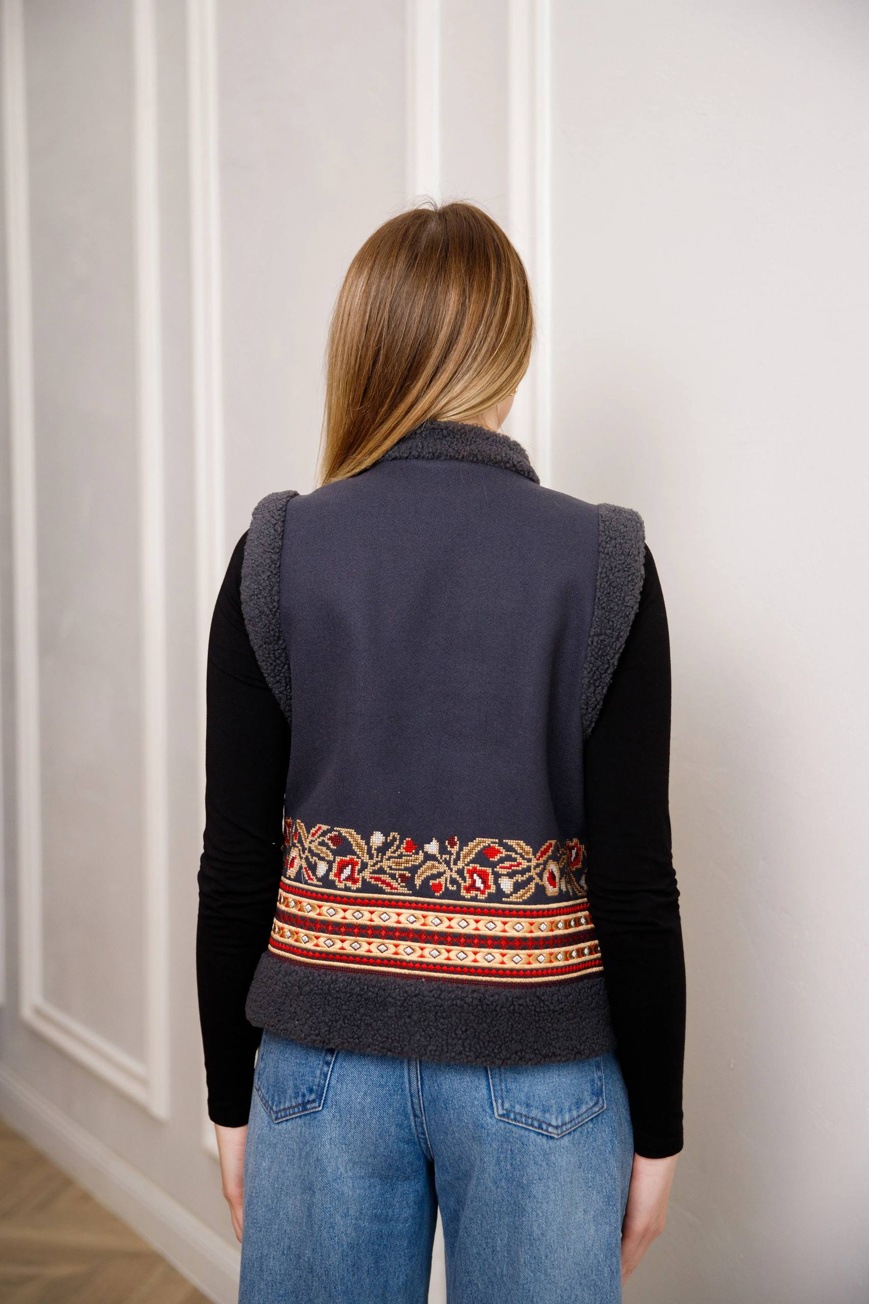 Карпатська кептарка з квітковим орнаментом (сіра)