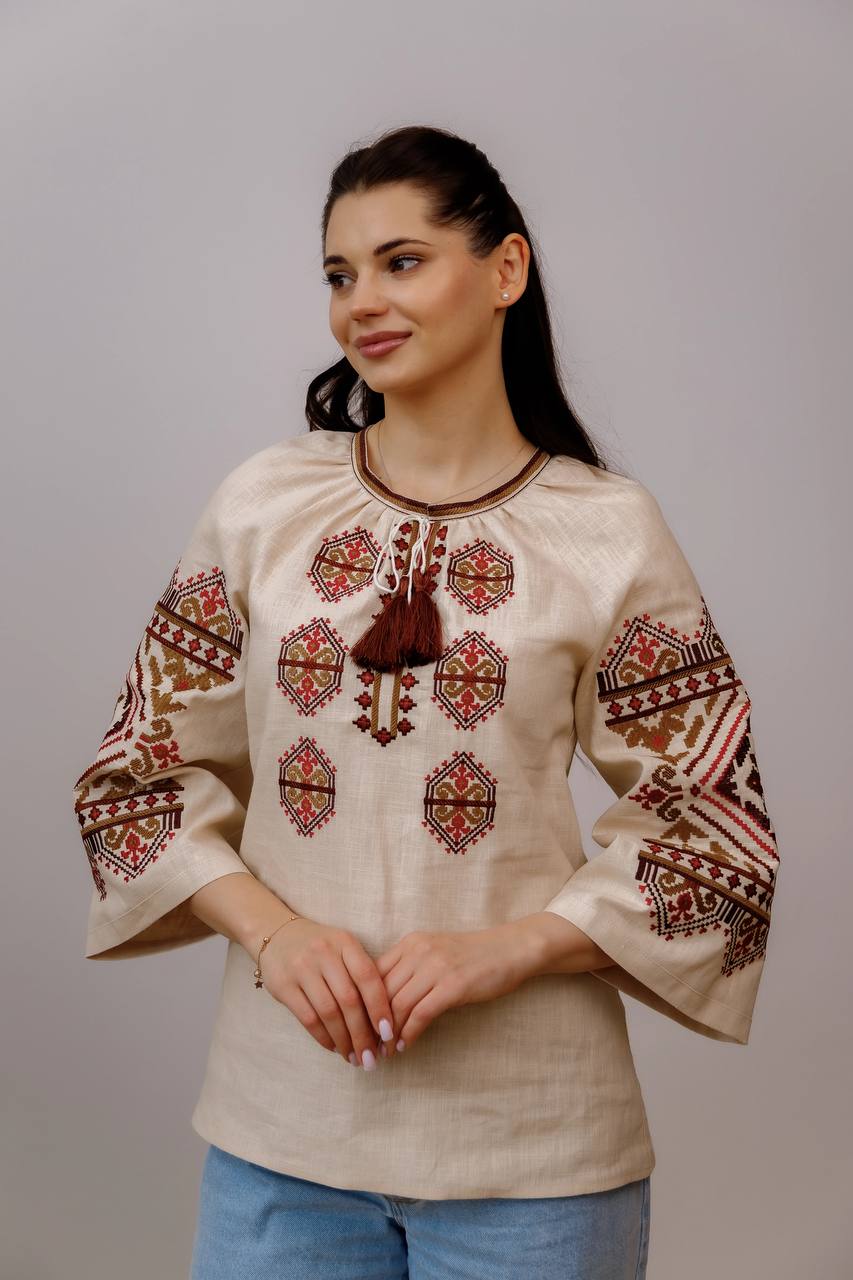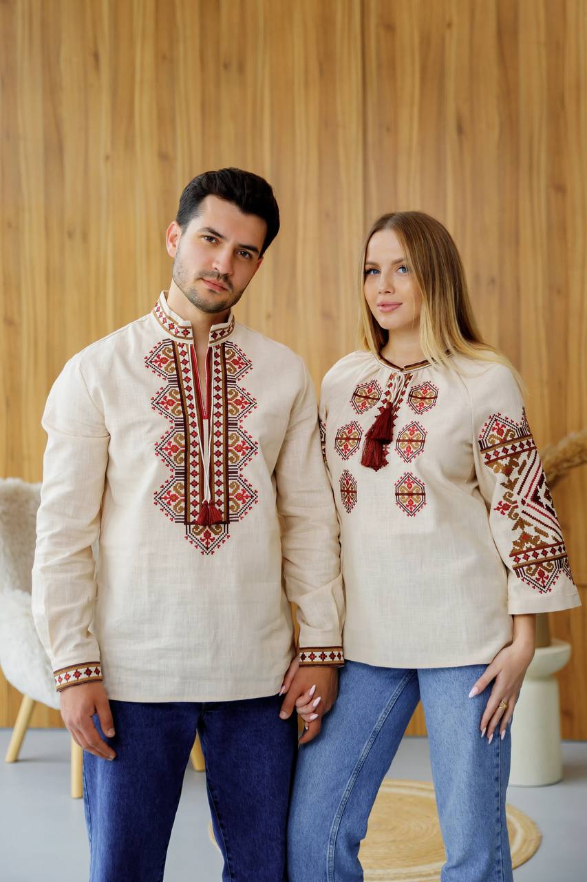 Парний комплект Богуслави (беж з вишневим)виконаний на натуральній тканині.