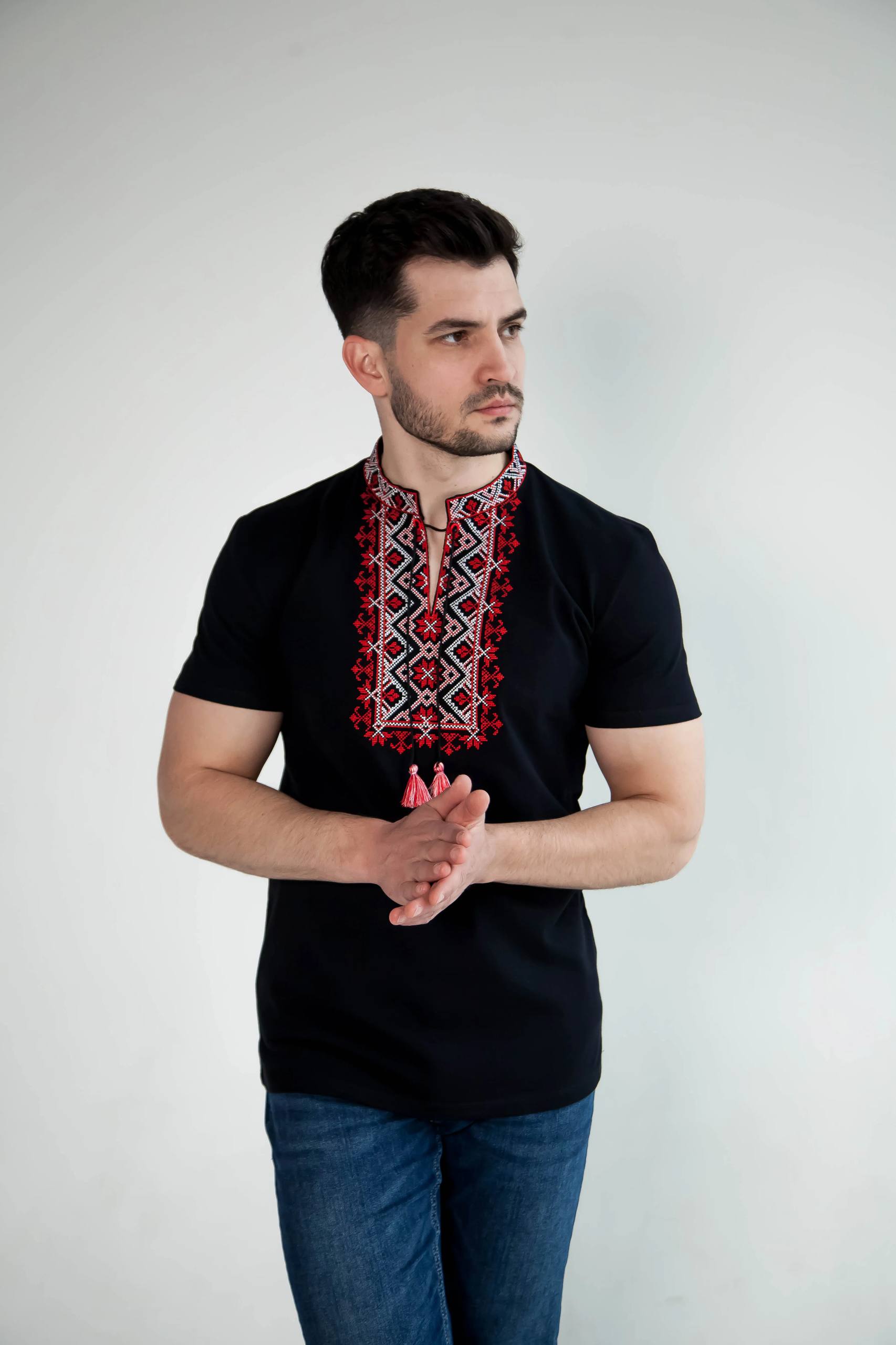 Чоловіча вишиванка Єремія (коричнево-зелена)