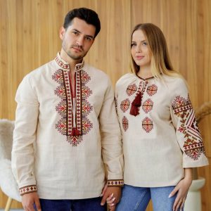 Жіноча вишиванка Богуслава (беж з вишневим )